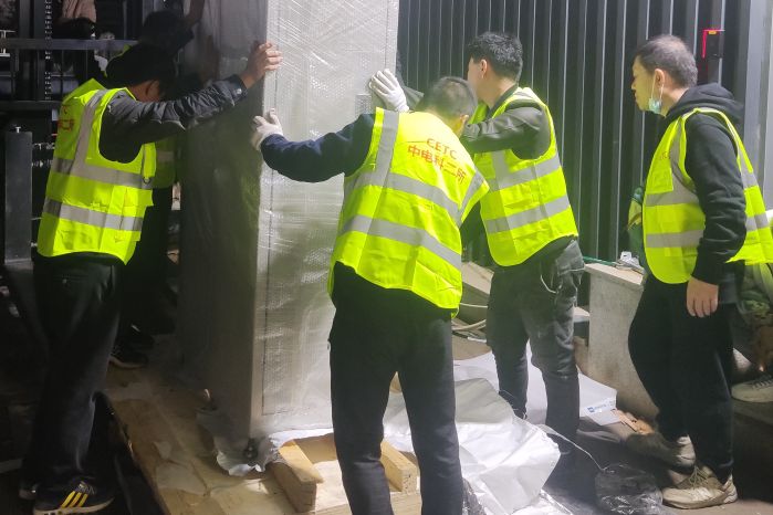 在設備進場時,正趕上太原市連日降雨、氣溫驟降,為了不耽誤項目進度,項目組決定在保證安全的前提下連夜冒雨作業(yè)。微信群內的消息剛一發(fā)出,“收到”“明白”“馬上到”,一條條簡短的回復從手機上彈出,大家無一例外的準時出現(xiàn)在項目現(xiàn)場,卸貨、搬運、拆包,期間馬不停蹄地投入工作。團隊齊心協(xié)力,奮力拼搏,確保了設備按時進場。初冬的寒風陣陣襲來,冰冷的雨水和汗水交織在一起,描繪出團隊奮戰(zhàn)四季度的最美畫卷。